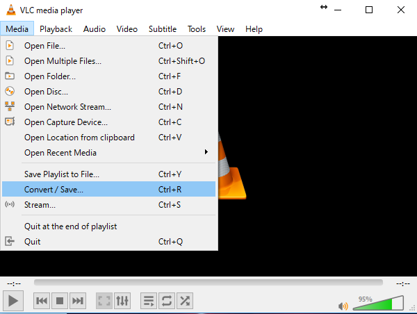 Open the 'Media' Menu and select 'Covert/Save'..